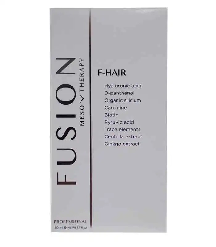 کوکتل درمان ریزش و رویش مجدد موها فیوژن F-HAIR یک محلول مزوتراپی با حجم 10 میلیلیتر و ساخت کشور اسپانیا است که به طور ویژه برای درمان انواع ریزش مو (آندروژنیک، تلوژن افلوویوم و غیره)، تقویت پوست سر و تحریک رویش مجدد تارهای مو طراحی شده است.